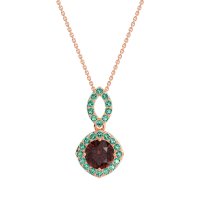 This Ruby and Emerald Necklace is casted in 14K Rose Gold. This Women’s Halo necklace features exceptionally fine gemstones, on par with those found in the world's most exclusive boutiques and among the top 10% available globally. Modern Pendant Featuring A Central, Round Stone Surrounded By A Halo Of Smaller Stones. The Bail Is Also Embellished with Delicate Stone Accents. This necklace comes with a complimentary 18-inch chain. Enjoy the confidence of our 30-day, stress-free return policy—with return shipping fully covered. Each piece is also accompanied by a Lifetime Warranty, ensuring lasting beauty and peace of mind.