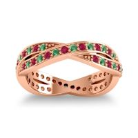 This Ruby wedding ring is casted in 18K Rose Gold and set with fine quality Ruby and Emerald. All of the gemstones we use are of the top 10% available, those found in fine quality boutiques across the world. This Ruby wedding band can also be added to your collection of minimalist Ruby rings. This Playful Design Is Both Secure And Stylish. Your Round Colored Stones Sit in A Shared 4 Prong Setting On Two Woven Strands Around The Band. Free shipping, returns, resizing, and a lifetime warranty ensure you love your purchase.