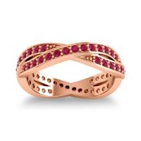 This Ruby wedding ring is set with AAAA Ruby, amongst the top 10% of material available. This ring can be casted in your choice of 9 metals. Ruby rings can be worn as gemstone wedding rings, or can even be stacked with your other gemstone rings. This Playful Design Is Both Secure And Stylish. Your Round Colored Stones Sit in A Shared 4 Prong Setting On Two Woven Strands Around The Band. Choose from a variety of gems and metals to make truly unique custom rings! Free shipping, returns, resizing, and a lifetime warranty make choosing this product easy.
