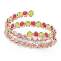 This Peridot and Ruby ring is the perfect addition to you wardrobe. Not only do we use the top 10% of gemstones available, we also make everything right here in New York City. Our Fashion Rings can be added to your collection of dainty rings, or even to your collection of stacking rings. This Ring Features Round Brilliant Gems Bezel Set One Third Of The Way Around The Top in A Wrap Setting. Ditch the worry, embrace the shine with free shipping, returns, resizing and a lifetime warranty.