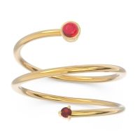 This Ruby and Garnet ring is the perfect addition to you wardrobe. Not only do we use the top 10% of gemstones available, we also make everything right here in New York City. Our Fashion Rings can be added to your collection of dainty rings, or even to your collection of stacking rings. This Ring Features One Bezel Set Cabochon Gem And One Prong Set Round Brilliant Gem At Opposite Ends Of A Slender Modern Wrap Setting. Ditch the worry, embrace the shine with free shipping, returns, resizing and a lifetime warranty.