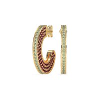 These Peridot earrings and made in 14k Yellow Gold with top quality Natural Peridot and Ruby gemstones. A Perfect Blend Of Classic Elegance And Unique Style, These Multi-row Open Hoop Fashion Earrings Are A Timeless Addition To Any Collection. Free shipping, returns, and a lifetime warranty make luxury worry-free