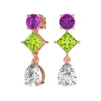 These 14K Rose Gold Amethyst earrings feature fine quality with Amethyst, Peridot and Lab Diamond gemstones. Adorn Your Ears With These Sparkling Dangle Earrings, Showcasing A Brilliant Trio Of Round, Princess, And Pear-shaped Stones For A Truly Captivating And Versatile Look. Free shipping, returns, and a lifetime warranty make luxury worry-free.