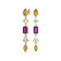 These 14k Yellow Gold Amethyst earrings feature fine quality with Amethyst, Citrine and Lab Diamond gemstones. Experience Captivating Beauty With These Dangling Earrings, Artfully Designed With An Array Of Shapes. Free shipping, returns, and a lifetime warranty make luxury worry-free.