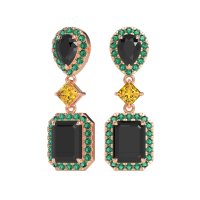These 18K Rose Gold Black Onyx earrings feature fine quality with Natural Black Onyx, Citrine and Emerald gemstones. These Dangling Earrings Create A Spectacular Cascade Of Brilliance, Featuring A Harmonious Arrangement Of Three Distinct Gemstone Cuts. Each Earring Begins With A Radiant Pear-shaped Stone Framed By A Sparkling Halo At The Top, Followed By A Brilliant Princess-cut Stone Securely Prong-set In The Middle. The Design Culminates In A Stunning Emerald-cut Stone Gracefully Encircled By Its Own Dazzling Halo At The Bottom. This Intricate Multi-tier Design Ensures Breathtaking Movement And Unparalleled Sparkle With Every Turn. Free shipping, returns, and a lifetime warranty make luxury worry-free.