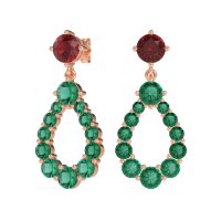 These Ruby earrings and made in 14K Rose Gold with top quality Ruby and Lab Emerald gemstones. These Elegant Dangle Earrings Feature A Striking Open Pear-shaped Design, Meticulously Formed By A Cluster Of Sparkling Round Gems. A Single Larger Round Stone At The Top Initiates The Drop, Leading To The Beautifully Articulated Pear Outline. This Unique Arrangement Creates A Sophisticated Silhouette With Continuous Sparkle, Offering A Modern Twist On A Classic Shape. Free shipping, returns, and a lifetime warranty make luxury worry-free