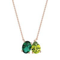 This Emerald and Peridot Necklace is casted in 14K Rose Gold. This Women’s Classic necklace features exceptionally fine gemstones, on par with those found in the world's most exclusive boutiques and among the top 10% available globally. This Elegant "toi Et Moi" Pendant Features Two Linked Stones: A Classic Round Nestled Beside A Graceful Pear. This necklace comes with a complimentary 18-inch chain. Enjoy the confidence of our 30-day, stress-free return policy—with return shipping fully covered. Each piece is also accompanied by a Lifetime Warranty, ensuring lasting beauty and peace of mind.