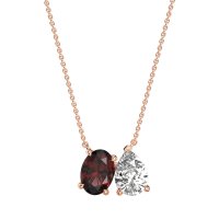This Ruby and Lab Diamond Necklace is casted in 14K Rose Gold. This Women’s Classic necklace features exceptionally fine gemstones, on par with those found in the world's most exclusive boutiques and among the top 10% available globally. This Elegant "toi Et Moi" Pendant Features Two Linked Stones: A Classic Round Nestled Beside A Graceful Pear. This necklace comes with a complimentary 18-inch chain. Enjoy the confidence of our 30-day, stress-free return policy—with return shipping fully covered. Each piece is also accompanied by a Lifetime Warranty, ensuring lasting beauty and peace of mind.