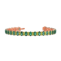 These 14K Rose Gold bracelets feature fine quality Emerald gemstones. This Tennis Bracelet Features A Captivating Arrangement Of An Alternating Sequence Of Sparkling Round And Captivating Oval Gemstones. The Combination Of Classic And Modern Elements Makes It A Versatile Piece That Complements A Variety Of Styles. Dress It Down For A Touch Of Everyday Elegance, Or Let It Add A Touch Of Glamour To Your Evening Attire. Free shipping, returns, and a lifetime warranty make luxury worry-free