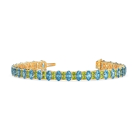 These 14k Yellow Gold bracelets feature fine quality Swiss Blue Topaz gemstones. This Tennis Bracelet Features A Captivating Arrangement Of An Alternating Sequence Of Sparkling Round And Captivating Oval Gemstones. The Combination Of Classic And Modern Elements Makes It A Versatile Piece That Complements A Variety Of Styles. Dress It Down For A Touch Of Everyday Elegance, Or Let It Add A Touch Of Glamour To Your Evening Attire. Free shipping, returns, and a lifetime warranty make luxury worry-free