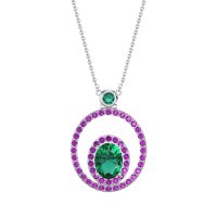 This Emerald and Amethyst Necklace is casted in 14k White Gold. This Women’s Fashion necklace features exceptionally fine gemstones, on par with those found in the world's most exclusive boutiques and among the top 10% available globally. Double Halo Pendant Featuring A Central Oval-shaped Stone Framed By A Halo Of Smaller Stones. This inner Halo Is Then Encircled By A Larger, Outer Halo, Creating A Bold And Dimensional Look. This necklace comes with a complimentary 18-inch chain. Enjoy the confidence of our 30-day, stress-free return policy—with return shipping fully covered. Each piece is also accompanied by a Lifetime Warranty, ensuring lasting beauty and peace of mind.