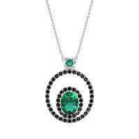 This Lab Emerald and Black Onyx Necklace is casted in 14k White Gold. This Women’s Fashion necklace features exceptionally fine gemstones, on par with those found in the world's most exclusive boutiques and among the top 10% available globally. Double Halo Pendant Featuring A Central Oval-shaped Stone Framed By A Halo Of Smaller Stones. This inner Halo Is Then Encircled By A Larger, Outer Halo, Creating A Bold And Dimensional Look. This necklace comes with a complimentary 18-inch chain. Enjoy the confidence of our 30-day, stress-free return policy—with return shipping fully covered. Each piece is also accompanied by a Lifetime Warranty, ensuring lasting beauty and peace of mind.