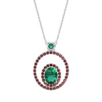 This Lab Emerald and Ruby Necklace is casted in 14k White Gold. This Women’s Fashion necklace features exceptionally fine gemstones, on par with those found in the world's most exclusive boutiques and among the top 10% available globally. Double Halo Pendant Featuring A Central Oval-shaped Stone Framed By A Halo Of Smaller Stones. This inner Halo Is Then Encircled By A Larger, Outer Halo, Creating A Bold And Dimensional Look. This necklace comes with a complimentary 18-inch chain. Enjoy the confidence of our 30-day, stress-free return policy—with return shipping fully covered. Each piece is also accompanied by a Lifetime Warranty, ensuring lasting beauty and peace of mind.
