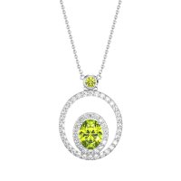 This Peridot and Lab Diamond Necklace is casted in 14k White Gold. This Women’s Fashion necklace features exceptionally fine gemstones, on par with those found in the world's most exclusive boutiques and among the top 10% available globally. Double Halo Pendant Featuring A Central Oval-shaped Stone Framed By A Halo Of Smaller Stones. This inner Halo Is Then Encircled By A Larger, Outer Halo, Creating A Bold And Dimensional Look. This necklace comes with a complimentary 18-inch chain. Enjoy the confidence of our 30-day, stress-free return policy—with return shipping fully covered. Each piece is also accompanied by a Lifetime Warranty, ensuring lasting beauty and peace of mind.