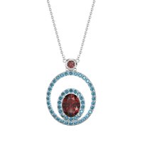 This Ruby and London Blue Topaz Necklace is casted in 14k White Gold. This Women’s Fashion necklace features exceptionally fine gemstones, on par with those found in the world's most exclusive boutiques and among the top 10% available globally. Double Halo Pendant Featuring A Central Oval-shaped Stone Framed By A Halo Of Smaller Stones. This inner Halo Is Then Encircled By A Larger, Outer Halo, Creating A Bold And Dimensional Look. This necklace comes with a complimentary 18-inch chain. Enjoy the confidence of our 30-day, stress-free return policy—with return shipping fully covered. Each piece is also accompanied by a Lifetime Warranty, ensuring lasting beauty and peace of mind.