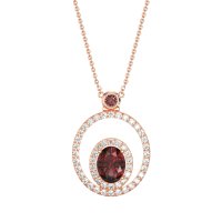 This Ruby and Lab Diamond Necklace is casted in 18K Rose Gold. This Women’s Fashion necklace features exceptionally fine gemstones, on par with those found in the world's most exclusive boutiques and among the top 10% available globally. Double Halo Pendant Featuring A Central Oval-shaped Stone Framed By A Halo Of Smaller Stones. This inner Halo Is Then Encircled By A Larger, Outer Halo, Creating A Bold And Dimensional Look. This necklace comes with a complimentary 18-inch chain. Enjoy the confidence of our 30-day, stress-free return policy—with return shipping fully covered. Each piece is also accompanied by a Lifetime Warranty, ensuring lasting beauty and peace of mind.