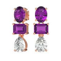 These Amethyst earrings and made in 18K Rose Gold with top quality Amethyst and Lab Diamond gemstones. Uniquely Designed, These Dangling Earrings Present A Beautiful Trio Of Shapes – Oval, Emerald Cut, And Pear – Artfully Combined For A Truly Distinctive Look. The Design Is Completed With A Secure Pushback Closure. Free shipping, returns, and a lifetime warranty make luxury worry-free