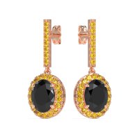 These Black Onyx earrings and made in 18K Rose Gold with top quality Natural Black Onyx and Citrine gemstones. Add Timeless Elegance To Your Ensemble With Our Oval Halo Drop Earrings. Featuring A Dazzling Oval-shaped Center Stone Surrounded By A Sparkling Halo, Each Earring Is Suspended From A Delicate Line Of Gemestones That Catches The Light With Every Movement. Free shipping, returns, and a lifetime warranty make luxury worry-free