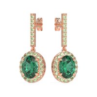 These Lab Emerald earrings and made in 18K Rose Gold with top quality Lab Emerald and Peridot gemstones. Add Timeless Elegance To Your Ensemble With Our Oval Halo Drop Earrings. Featuring A Dazzling Oval-shaped Center Stone Surrounded By A Sparkling Halo, Each Earring Is Suspended From A Delicate Line Of Gemestones That Catches The Light With Every Movement. Free shipping, returns, and a lifetime warranty make luxury worry-free