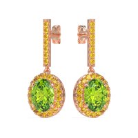 These Peridot earrings and made in 18K Rose Gold with top quality Natural Peridot and Citrine gemstones. Add Timeless Elegance To Your Ensemble With Our Oval Halo Drop Earrings. Featuring A Dazzling Oval-shaped Center Stone Surrounded By A Sparkling Halo, Each Earring Is Suspended From A Delicate Line Of Gemestones That Catches The Light With Every Movement. Free shipping, returns, and a lifetime warranty make luxury worry-free