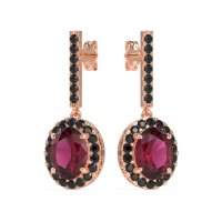These Ruby earrings and made in 18K Rose Gold with top quality Natural Ruby and Black Onyx gemstones. Add Timeless Elegance To Your Ensemble With Our Oval Halo Drop Earrings. Featuring A Dazzling Oval-shaped Center Stone Surrounded By A Sparkling Halo, Each Earring Is Suspended From A Delicate Line Of Gemestones That Catches The Light With Every Movement. Free shipping, returns, and a lifetime warranty make luxury worry-free