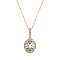 This Diamond and Peridot Necklace is casted in 14K Rose Gold. This Women’s Halo necklace features exceptionally fine gemstones, on par with those found in the world's most exclusive boutiques and among the top 10% available globally. This Oval Halo Pendant Features A Central Oval Stones Surrounded By Smaller Gems To Form A Halo. The Bail Is Also Embellished with Sparkling Stones. This necklace comes with a complimentary 18-inch chain. Enjoy the confidence of our 30-day, stress-free return policy—with return shipping fully covered. Each piece is also accompanied by a Lifetime Warranty, ensuring lasting beauty and peace of mind.