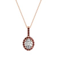 This Diamond and Ruby Necklace is casted in 18K Rose Gold. This Women’s Halo necklace features exceptionally fine gemstones, on par with those found in the world's most exclusive boutiques and among the top 10% available globally. This Oval Halo Pendant Features A Central Oval Stones Surrounded By Smaller Gems To Form A Halo. The Bail Is Also Embellished with Sparkling Stones. This necklace comes with a complimentary 18-inch chain. Enjoy the confidence of our 30-day, stress-free return policy—with return shipping fully covered. Each piece is also accompanied by a Lifetime Warranty, ensuring lasting beauty and peace of mind.