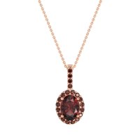 This Ruby and Garnet Necklace is casted in 14K Rose Gold. This Women’s Halo necklace features exceptionally fine gemstones, on par with those found in the world's most exclusive boutiques and among the top 10% available globally. This Oval Halo Pendant Features A Central Oval Stones Surrounded By Smaller Gems To Form A Halo. The Bail Is Also Embellished with Sparkling Stones. This necklace comes with a complimentary 18-inch chain. Enjoy the confidence of our 30-day, stress-free return policy—with return shipping fully covered. Each piece is also accompanied by a Lifetime Warranty, ensuring lasting beauty and peace of mind.