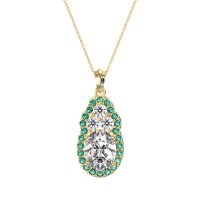 This Lab Diamond and Emerald Necklace is casted in 14k Yellow Gold. This Women’s Halo necklace features exceptionally fine gemstones, on par with those found in the world's most exclusive boutiques and among the top 10% available globally. Elegant Pendant Featuring An Oval Center Stone Embraced By A Halo Of Smaller Stones. Connected Directly Above Is A Cluster Of Three Stones, Adding A Graceful Accent. This necklace comes with a complimentary 18-inch chain. Enjoy the confidence of our 30-day, stress-free return policy—with return shipping fully covered. Each piece is also accompanied by a Lifetime Warranty, ensuring lasting beauty and peace of mind.