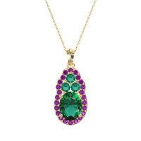 This Lab Emerald and Amethyst Necklace is casted in 14k Yellow Gold. This Women’s Halo necklace features exceptionally fine gemstones, on par with those found in the world's most exclusive boutiques and among the top 10% available globally. Elegant Pendant Featuring An Oval Center Stone Embraced By A Halo Of Smaller Stones. Connected Directly Above Is A Cluster Of Three Stones, Adding A Graceful Accent. This necklace comes with a complimentary 18-inch chain. Enjoy the confidence of our 30-day, stress-free return policy—with return shipping fully covered. Each piece is also accompanied by a Lifetime Warranty, ensuring lasting beauty and peace of mind.