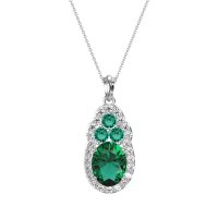 This Lab Emerald and Lab Diamond Necklace is casted in Palladium. This Women’s Halo necklace features exceptionally fine gemstones, on par with those found in the world's most exclusive boutiques and among the top 10% available globally. Elegant Pendant Featuring An Oval Center Stone Embraced By A Halo Of Smaller Stones. Connected Directly Above Is A Cluster Of Three Stones, Adding A Graceful Accent. This necklace comes with a complimentary 18-inch chain. Enjoy the confidence of our 30-day, stress-free return policy—with return shipping fully covered. Each piece is also accompanied by a Lifetime Warranty, ensuring lasting beauty and peace of mind.