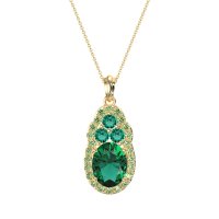 This Lab Emerald and Peridot Necklace is casted in 14k Yellow Gold. This Women’s Halo necklace features exceptionally fine gemstones, on par with those found in the world's most exclusive boutiques and among the top 10% available globally. Elegant Pendant Featuring An Oval Center Stone Embraced By A Halo Of Smaller Stones. Connected Directly Above Is A Cluster Of Three Stones, Adding A Graceful Accent. This necklace comes with a complimentary 18-inch chain. Enjoy the confidence of our 30-day, stress-free return policy—with return shipping fully covered. Each piece is also accompanied by a Lifetime Warranty, ensuring lasting beauty and peace of mind.