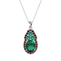 This Lab Emerald and Ruby Necklace is casted in Platinum. This Women’s Halo necklace features exceptionally fine gemstones, on par with those found in the world's most exclusive boutiques and among the top 10% available globally. Elegant Pendant Featuring An Oval Center Stone Embraced By A Halo Of Smaller Stones. Connected Directly Above Is A Cluster Of Three Stones, Adding A Graceful Accent. This necklace comes with a complimentary 18-inch chain. Enjoy the confidence of our 30-day, stress-free return policy—with return shipping fully covered. Each piece is also accompanied by a Lifetime Warranty, ensuring lasting beauty and peace of mind.