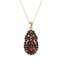 This Lab Ruby and Black Onyx Necklace is casted in 14k Yellow Gold. This Women’s Halo necklace features exceptionally fine gemstones, on par with those found in the world's most exclusive boutiques and among the top 10% available globally. Elegant Pendant Featuring An Oval Center Stone Embraced By A Halo Of Smaller Stones. Connected Directly Above Is A Cluster Of Three Stones, Adding A Graceful Accent. This necklace comes with a complimentary 18-inch chain. Enjoy the confidence of our 30-day, stress-free return policy—with return shipping fully covered. Each piece is also accompanied by a Lifetime Warranty, ensuring lasting beauty and peace of mind.