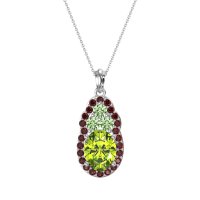 This Peridot and Ruby Necklace is casted in 14k White Gold. This Women’s Halo necklace features exceptionally fine gemstones, on par with those found in the world's most exclusive boutiques and among the top 10% available globally. Elegant Pendant Featuring An Oval Center Stone Embraced By A Halo Of Smaller Stones. Connected Directly Above Is A Cluster Of Three Stones, Adding A Graceful Accent. This necklace comes with a complimentary 18-inch chain. Enjoy the confidence of our 30-day, stress-free return policy—with return shipping fully covered. Each piece is also accompanied by a Lifetime Warranty, ensuring lasting beauty and peace of mind.