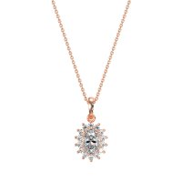 This Lab Diamond Halo Necklace is casted in 14K Rose Gold. We use only exceptionally fine gemstones, truly on par with those found in the world's most exclusive boutiques and representing the top 10% available globally. Oval Pendant Featuring A Central Oval Stone Encircled By A Halo Of Smaller Round Stones. You'll get a complimentary 18-inch chain with every necklace. Plus, enjoy a 30-day, hassle-free return policy (we even cover return shipping!) and a Lifetime Warranty for peace of mind.