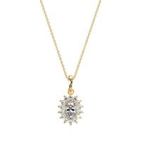 This Lab Diamond Halo Necklace is casted in 14k Yellow Gold. We use only exceptionally fine gemstones, truly on par with those found in the world's most exclusive boutiques and representing the top 10% available globally. Oval Pendant Featuring A Central Oval Stone Encircled By A Halo Of Smaller Round Stones. You'll get a complimentary 18-inch chain with every necklace. Plus, enjoy a 30-day, hassle-free return policy (we even cover return shipping!) and a Lifetime Warranty for peace of mind.
