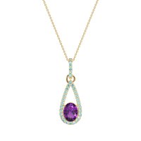 This Amethyst and Swiss Blue Topaz Necklace is casted in 14k Yellow Gold. This Women’s Fashion necklace features exceptionally fine gemstones, on par with those found in the world's most exclusive boutiques and among the top 10% available globally. Teardrop Pendant Outlined with Shimmering Accents. A Captivating Design with A Prominent Oval Center Stone, Surrounded By A Tear Drop Halo. This necklace comes with a complimentary 18-inch chain. Enjoy the confidence of our 30-day, stress-free return policy—with return shipping fully covered. Each piece is also accompanied by a Lifetime Warranty, ensuring lasting beauty and peace of mind.