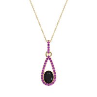 This Black Onyx and Amethyst Necklace is casted in 14k Yellow Gold. This Women’s Fashion necklace features exceptionally fine gemstones, on par with those found in the world's most exclusive boutiques and among the top 10% available globally. Teardrop Pendant Outlined with Shimmering Accents. A Captivating Design with A Prominent Oval Center Stone, Surrounded By A Tear Drop Halo. This necklace comes with a complimentary 18-inch chain. Enjoy the confidence of our 30-day, stress-free return policy—with return shipping fully covered. Each piece is also accompanied by a Lifetime Warranty, ensuring lasting beauty and peace of mind.