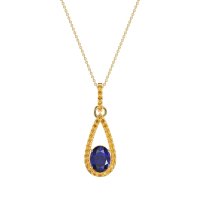 This Blue Sapphire and Citrine Necklace is casted in 14k Yellow Gold. This Women’s Fashion necklace features exceptionally fine gemstones, on par with those found in the world's most exclusive boutiques and among the top 10% available globally. Teardrop Pendant Outlined with Shimmering Accents. A Captivating Design with A Prominent Oval Center Stone, Surrounded By A Tear Drop Halo. This necklace comes with a complimentary 18-inch chain. Enjoy the confidence of our 30-day, stress-free return policy—with return shipping fully covered. Each piece is also accompanied by a Lifetime Warranty, ensuring lasting beauty and peace of mind.