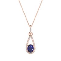 This Blue Sapphire and Lab Diamond Necklace is casted in 14K Rose Gold. This Women’s Fashion necklace features exceptionally fine gemstones, on par with those found in the world's most exclusive boutiques and among the top 10% available globally. Teardrop Pendant Outlined with Shimmering Accents. A Captivating Design with A Prominent Oval Center Stone, Surrounded By A Tear Drop Halo. This necklace comes with a complimentary 18-inch chain. Enjoy the confidence of our 30-day, stress-free return policy—with return shipping fully covered. Each piece is also accompanied by a Lifetime Warranty, ensuring lasting beauty and peace of mind.