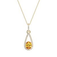 This Citrine and Lab Diamond Necklace is casted in 14k Yellow Gold. This Women’s Fashion necklace features exceptionally fine gemstones, on par with those found in the world's most exclusive boutiques and among the top 10% available globally. Teardrop Pendant Outlined with Shimmering Accents. A Captivating Design with A Prominent Oval Center Stone, Surrounded By A Tear Drop Halo. This necklace comes with a complimentary 18-inch chain. Enjoy the confidence of our 30-day, stress-free return policy—with return shipping fully covered. Each piece is also accompanied by a Lifetime Warranty, ensuring lasting beauty and peace of mind.