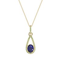 This Lab Blue Sapphire and Peridot Necklace is casted in 18k Yellow Gold. This Women’s Fashion necklace features exceptionally fine gemstones, on par with those found in the world's most exclusive boutiques and among the top 10% available globally. Teardrop Pendant Outlined with Shimmering Accents. A Captivating Design with A Prominent Oval Center Stone, Surrounded By A Tear Drop Halo. This necklace comes with a complimentary 18-inch chain. Enjoy the confidence of our 30-day, stress-free return policy—with return shipping fully covered. Each piece is also accompanied by a Lifetime Warranty, ensuring lasting beauty and peace of mind.