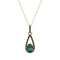 This Lab Emerald and Black Onyx Necklace is casted in 14k Yellow Gold. This Women’s Fashion necklace features exceptionally fine gemstones, on par with those found in the world's most exclusive boutiques and among the top 10% available globally. Teardrop Pendant Outlined with Shimmering Accents. A Captivating Design with A Prominent Oval Center Stone, Surrounded By A Tear Drop Halo. This necklace comes with a complimentary 18-inch chain. Enjoy the confidence of our 30-day, stress-free return policy—with return shipping fully covered. Each piece is also accompanied by a Lifetime Warranty, ensuring lasting beauty and peace of mind.