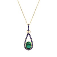 This Lab Emerald and Blue Sapphire Necklace is casted in 14k Yellow Gold. This Women’s Fashion necklace features exceptionally fine gemstones, on par with those found in the world's most exclusive boutiques and among the top 10% available globally. Teardrop Pendant Outlined with Shimmering Accents. A Captivating Design with A Prominent Oval Center Stone, Surrounded By A Tear Drop Halo. This necklace comes with a complimentary 18-inch chain. Enjoy the confidence of our 30-day, stress-free return policy—with return shipping fully covered. Each piece is also accompanied by a Lifetime Warranty, ensuring lasting beauty and peace of mind.