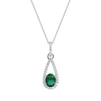 This Lab Emerald and Lab Diamond Necklace is casted in Palladium. This Women’s Fashion necklace features exceptionally fine gemstones, on par with those found in the world's most exclusive boutiques and among the top 10% available globally. Teardrop Pendant Outlined with Shimmering Accents. A Captivating Design with A Prominent Oval Center Stone, Surrounded By A Tear Drop Halo. This necklace comes with a complimentary 18-inch chain. Enjoy the confidence of our 30-day, stress-free return policy—with return shipping fully covered. Each piece is also accompanied by a Lifetime Warranty, ensuring lasting beauty and peace of mind.