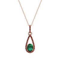 This Lab Emerald and Ruby Necklace is casted in 18K Rose Gold. This Women’s Fashion necklace features exceptionally fine gemstones, on par with those found in the world's most exclusive boutiques and among the top 10% available globally. Teardrop Pendant Outlined with Shimmering Accents. A Captivating Design with A Prominent Oval Center Stone, Surrounded By A Tear Drop Halo. This necklace comes with a complimentary 18-inch chain. Enjoy the confidence of our 30-day, stress-free return policy—with return shipping fully covered. Each piece is also accompanied by a Lifetime Warranty, ensuring lasting beauty and peace of mind.