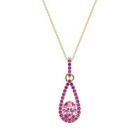 This Pink Tourmaline and Amethyst Necklace is casted in 14k Yellow Gold. This Women’s Fashion necklace features exceptionally fine gemstones, on par with those found in the world's most exclusive boutiques and among the top 10% available globally. Teardrop Pendant Outlined with Shimmering Accents. A Captivating Design with A Prominent Oval Center Stone, Surrounded By A Tear Drop Halo. This necklace comes with a complimentary 18-inch chain. Enjoy the confidence of our 30-day, stress-free return policy—with return shipping fully covered. Each piece is also accompanied by a Lifetime Warranty, ensuring lasting beauty and peace of mind.