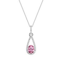 This Pink Tourmaline and Lab Diamond Necklace is casted in 18k White Gold. This Women’s Fashion necklace features exceptionally fine gemstones, on par with those found in the world's most exclusive boutiques and among the top 10% available globally. Teardrop Pendant Outlined with Shimmering Accents. A Captivating Design with A Prominent Oval Center Stone, Surrounded By A Tear Drop Halo. This necklace comes with a complimentary 18-inch chain. Enjoy the confidence of our 30-day, stress-free return policy—with return shipping fully covered. Each piece is also accompanied by a Lifetime Warranty, ensuring lasting beauty and peace of mind.
