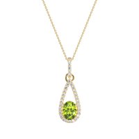 This Peridot and Lab Diamond Necklace is casted in 14k Yellow Gold. This Women’s Fashion necklace features exceptionally fine gemstones, on par with those found in the world's most exclusive boutiques and among the top 10% available globally. Teardrop Pendant Outlined with Shimmering Accents. A Captivating Design with A Prominent Oval Center Stone, Surrounded By A Tear Drop Halo. This necklace comes with a complimentary 18-inch chain. Enjoy the confidence of our 30-day, stress-free return policy—with return shipping fully covered. Each piece is also accompanied by a Lifetime Warranty, ensuring lasting beauty and peace of mind.